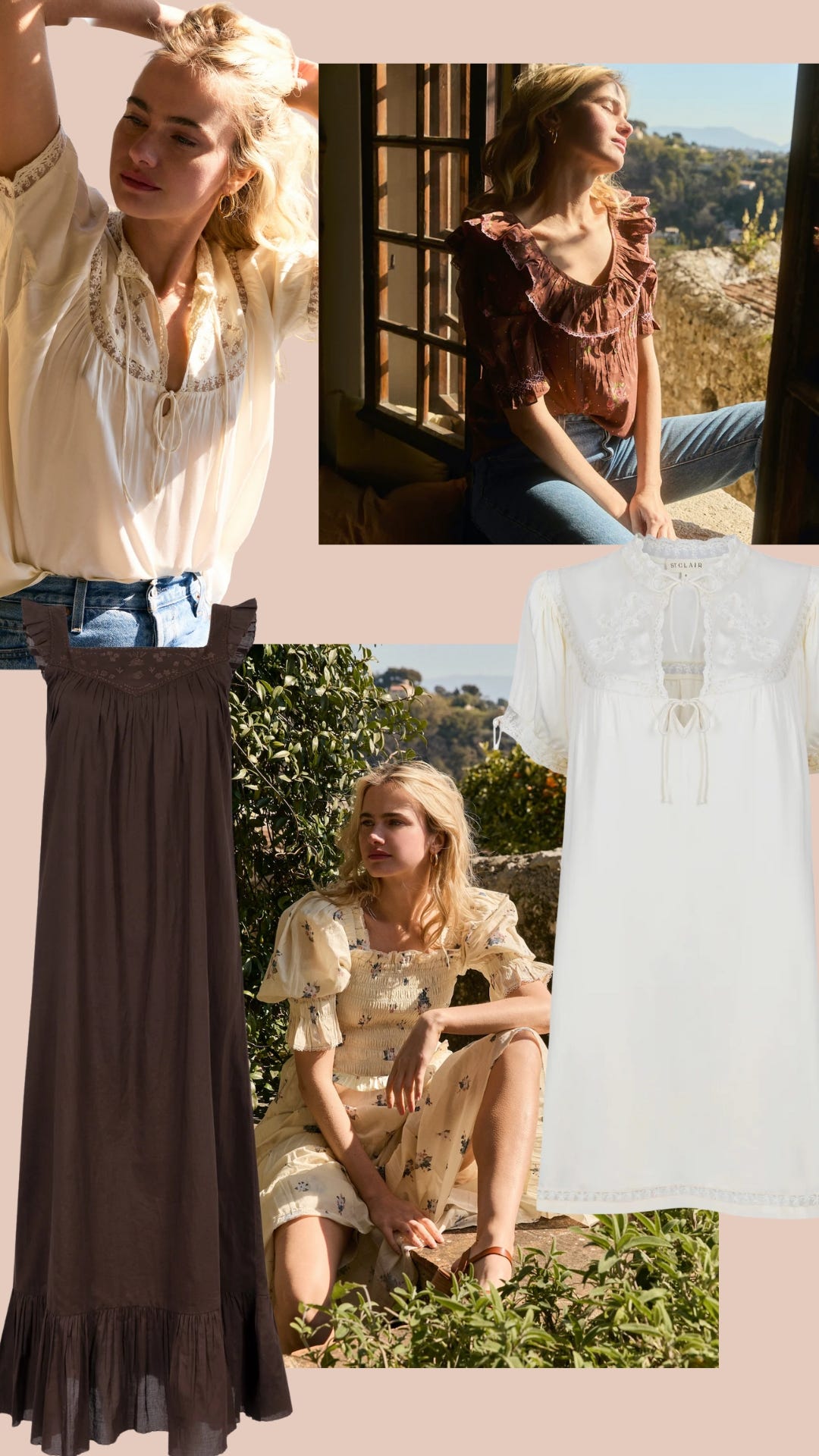 I love how easy the pieces are to wear (not that dresses are necessarily hard to wear, but some are just so easy somehow - just effortless (that’s the vibe I’m always chasing/coveting). I think it’s the combination of the prettiness with the ease that I particularly love - a bit like Dôen (another of my favourites). I never feel overdressed or ‘done up’ when I’m wearing a St. Clair dress. This one (Veryan) is honestly one of my most-worn summer dresses ever I think - it’s as light as a feather, so really cool to wear in the heat (hello, London heatwave, I was ready for you!), but with the maxi length, so you don’t feel too ‘exposed’. Then it’s the delicate shoulder frills and the perfect shade of (dark) chocolate that seal the deal. I literally wore it on repeat last summer, and this summer is going the exact same way. So perfect with the simplest of tan/black flat sandals. Just as perfect for everyday as for night time - just add a gold flat sandal and some jewellery. My other one is this one (Alicia) - a vintage-inspired dream of a dress that you can just chuck on, but feels and looks so special. It has the prettiest bow embroidery and again, feels so gorgeous next to your skin. My favourite way to wear it - with the simplest of flip-flops. It also comes in the chocolate brown.