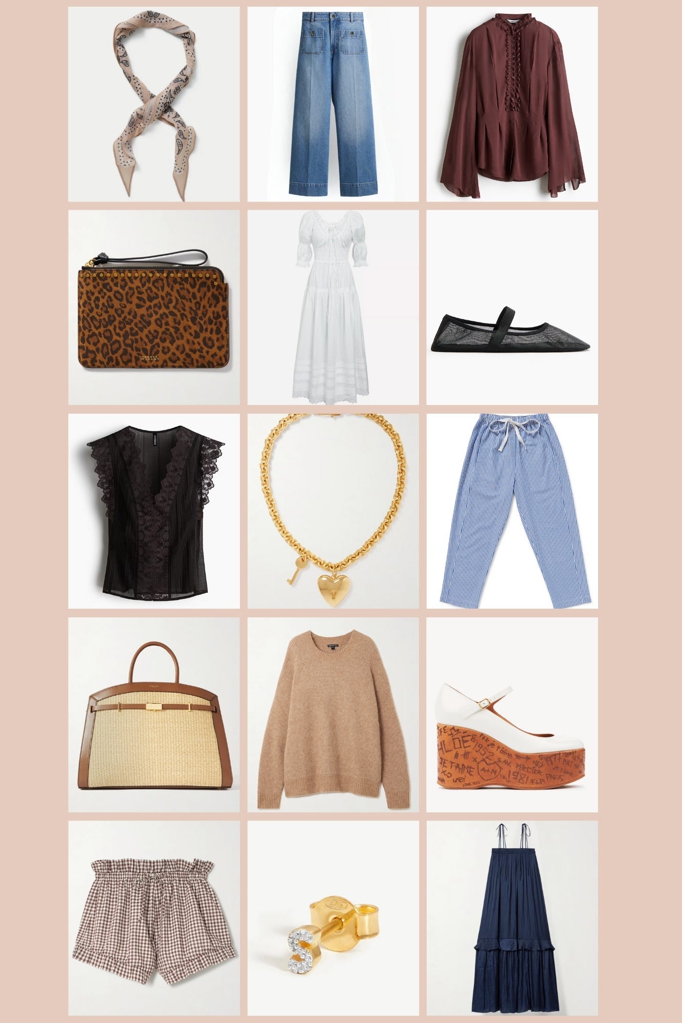 Fourth row: | Demellier bag | James Perse jumper | Chloé wedges